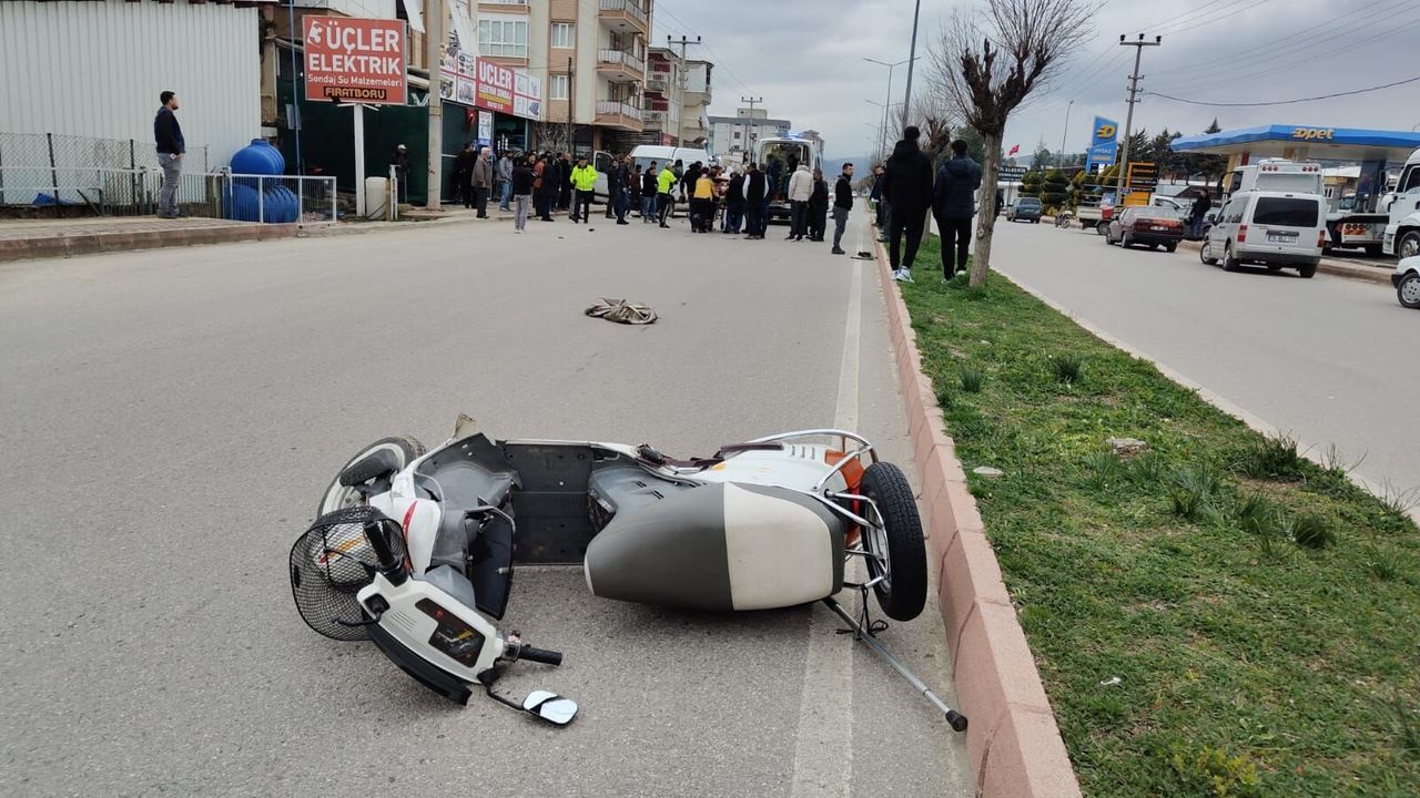 Sanayi Mahallesi Adnan Menderes Bulvarı ile 2508 Sokak'ın kesiştiği kavşakta, V.K. yönetimindeki 15 ABC 786 plakalı panelvan ile Faruk Delen (86) yönetimindeki 15 ES 418 plakalı motosiklet çarpıştı.