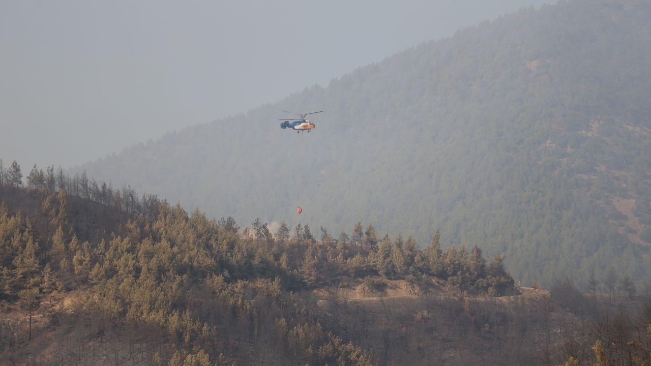 HATAY (AA) - Hatay'ın Hassa ilçesinde, dün akşam saatlerinde çıkan orman yangınına havadan ve karadan müdahale ediliyor.