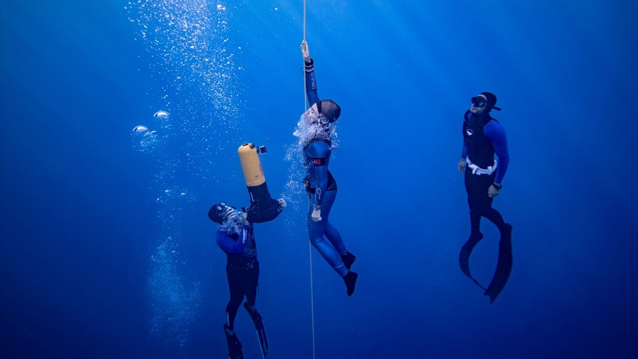 ANTALYA (AA) - Milli sporcu Şahika Ercümen, Gazze halkına dayanışma mesajı vermek amacıyla Antalya'nın Kaş ilçesinde değişken ağırlık paletsiz dalış kategorisinde kendisine ait dünya rekorunu geliştirdi.