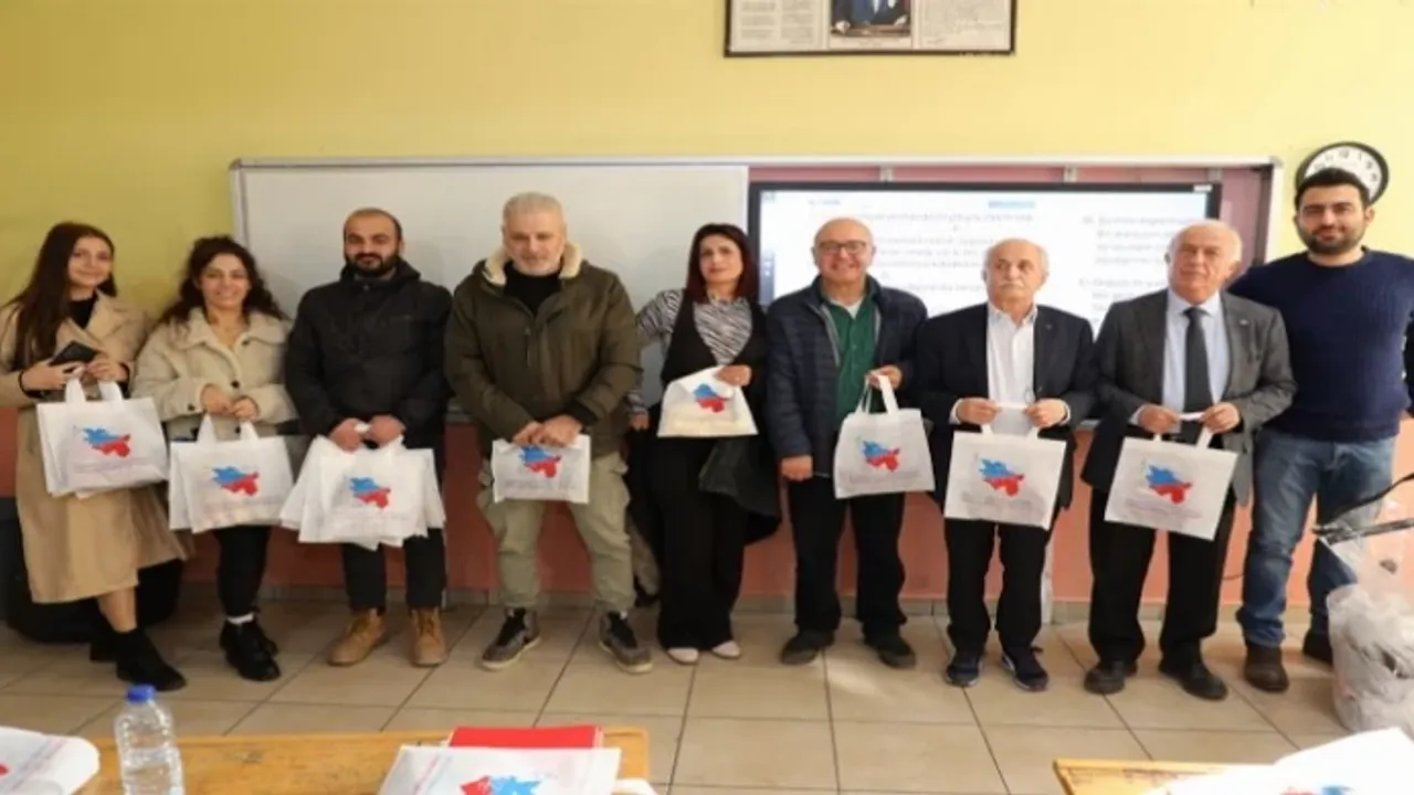 Kiel ve Lübeck'li kadınların elleri ile ördükleri elişi ürünler Samandağ İlçesi Cumhuriyet Ortaokulu bünyesinde bulunan İsmail ve Mehmet Selim Kara Ortaokulu'nda depremzede öğrencilere ulaştırıldı.