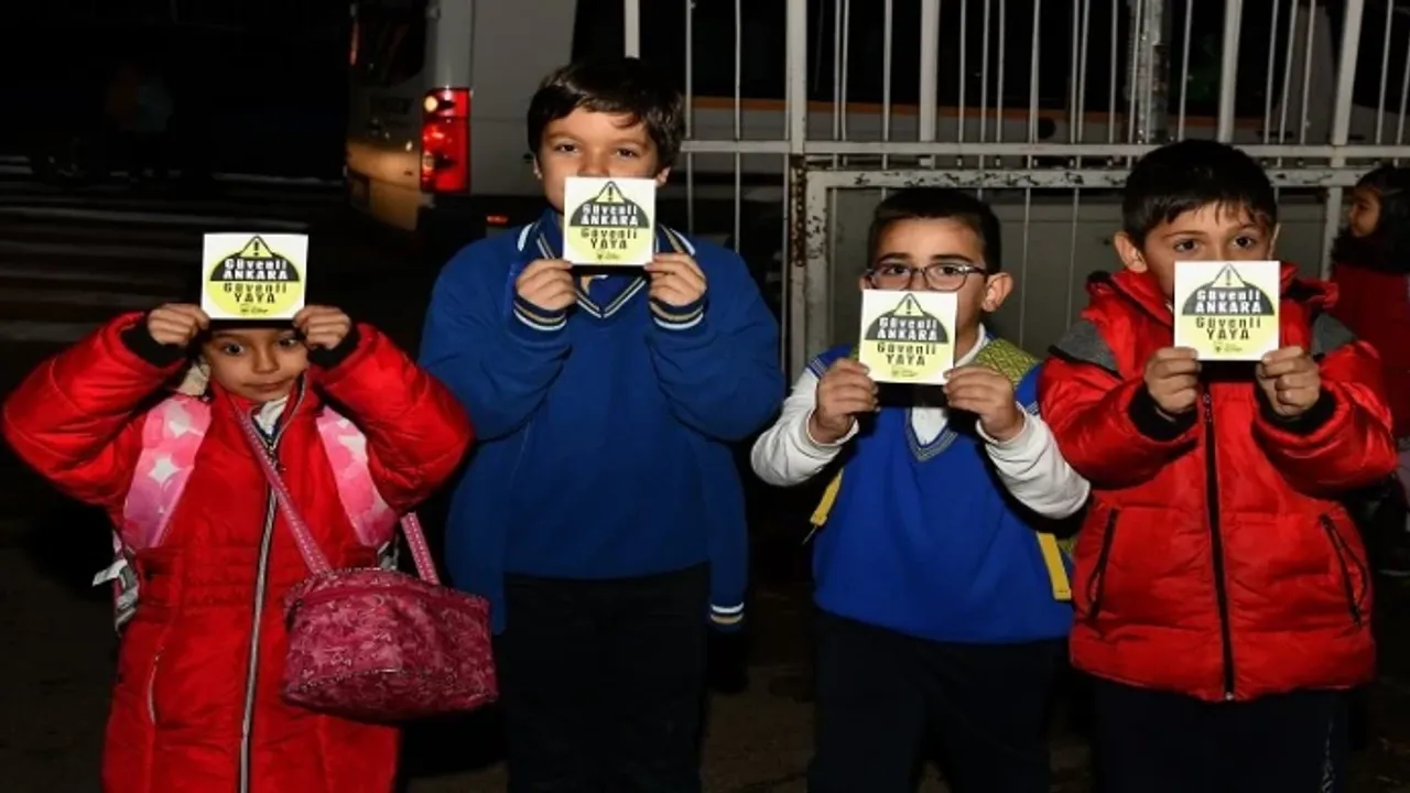 Ankara Büyükşehir Belediyesi, sabit saat uygulaması nedeniyle sabah erken saatlerde hava aydınlanmadan okula giden öğrencilerin can güvenliğinin sağlanması ve trafikte görünür olabilmesi amacıyla “Güvenli Ankara Güvenli Yaya” sloganıyla başlattığı “Reflektörlü Çanta Çıkartma” uygulamasına bu yıl da devam ediyor.