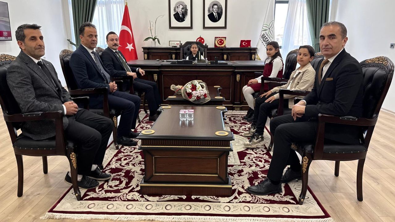 Hasanbeyli Kaymakamı Hüseyin Bütüner, makamını Hasanbeyli İlkokulu öğrencileri Elif Serra Yıldırım, Asel Özgüven ve Umut Emin Ateş’e temsili olarak devretti.