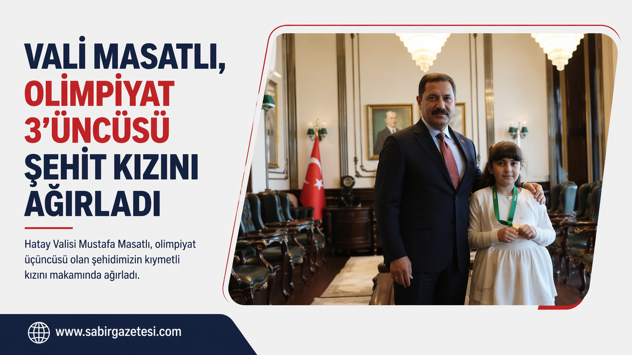 HATAY (AA) - Hatay Valisi Mustafa Masatlı, şehit polis memuru Emirhan Şimşek'in NextGen Uluslararası İngilizce Olimpiyatı'nda dünya 3'üncüsü olan 9 yaşındaki kızı Ömür Şimşek'i makamında kabul etti.