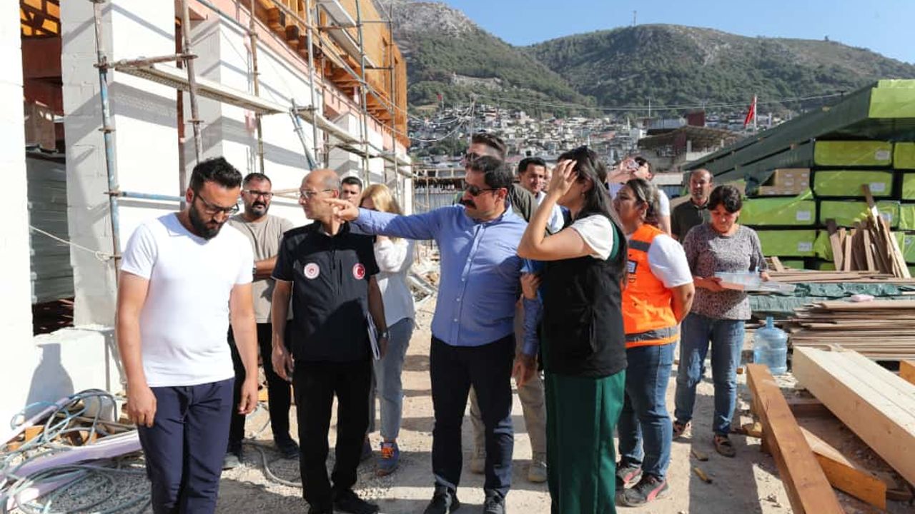 HATAY (AA) - Hatay Valisi Mustafa Masatlı, merkez Antakya ilçesinde yapımı süren Ayakkabıcılar Çarşısı'nda incelemede bulundu.