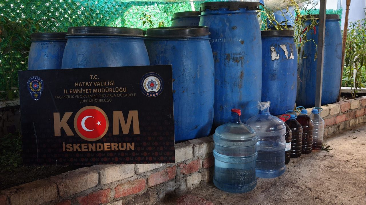 HATAY (AA) - Hatay'ın Arsuz ilçesinde 1250 litre sahte içki ele geçirilen operasyonda 1 şüpheli gözaltına alındı.