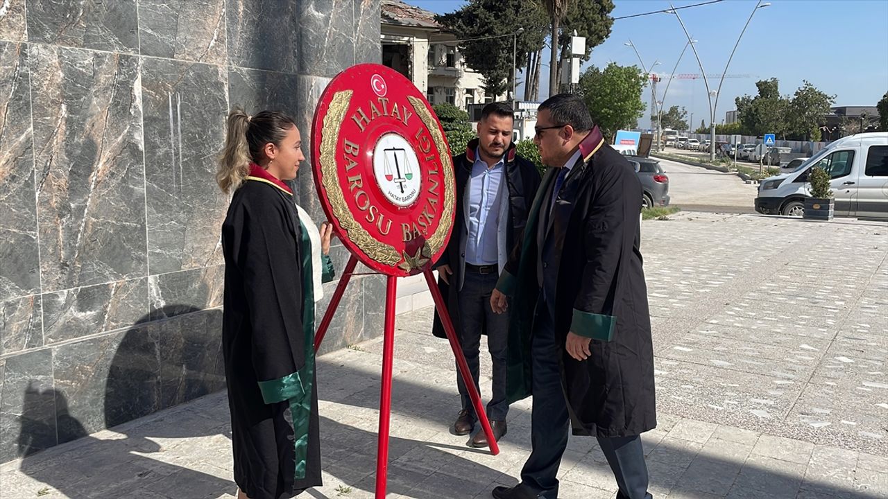 Hatay Adliyesi'nde bulunan baroda devam eden programda, Kahramanmaraş merkezli 6 Şubat 2023'te meydana gelen depremde hayatını kaybeden avukatlar anısına yaptırılan anıta karanfil bırakıldı.