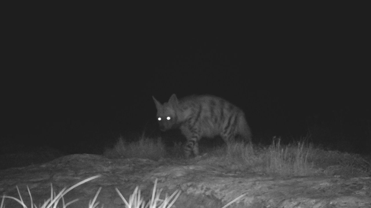 Fotokapanla kaydedilen görüntülerde dağ ceylanlarının sürü halinde otlanması, çizgili sırtlanın ise yiyecek arayışı görüldü.