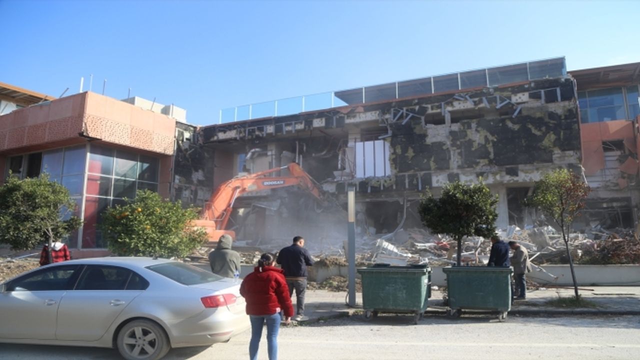 HATAY (AA) Hatay'ın merkez Antakya ilçesinde, Kahramanmaraş merkezli depremlerde ağır hasar alan alışveriş merkezinin kontrollü yıkım çalışmasına başlandı.