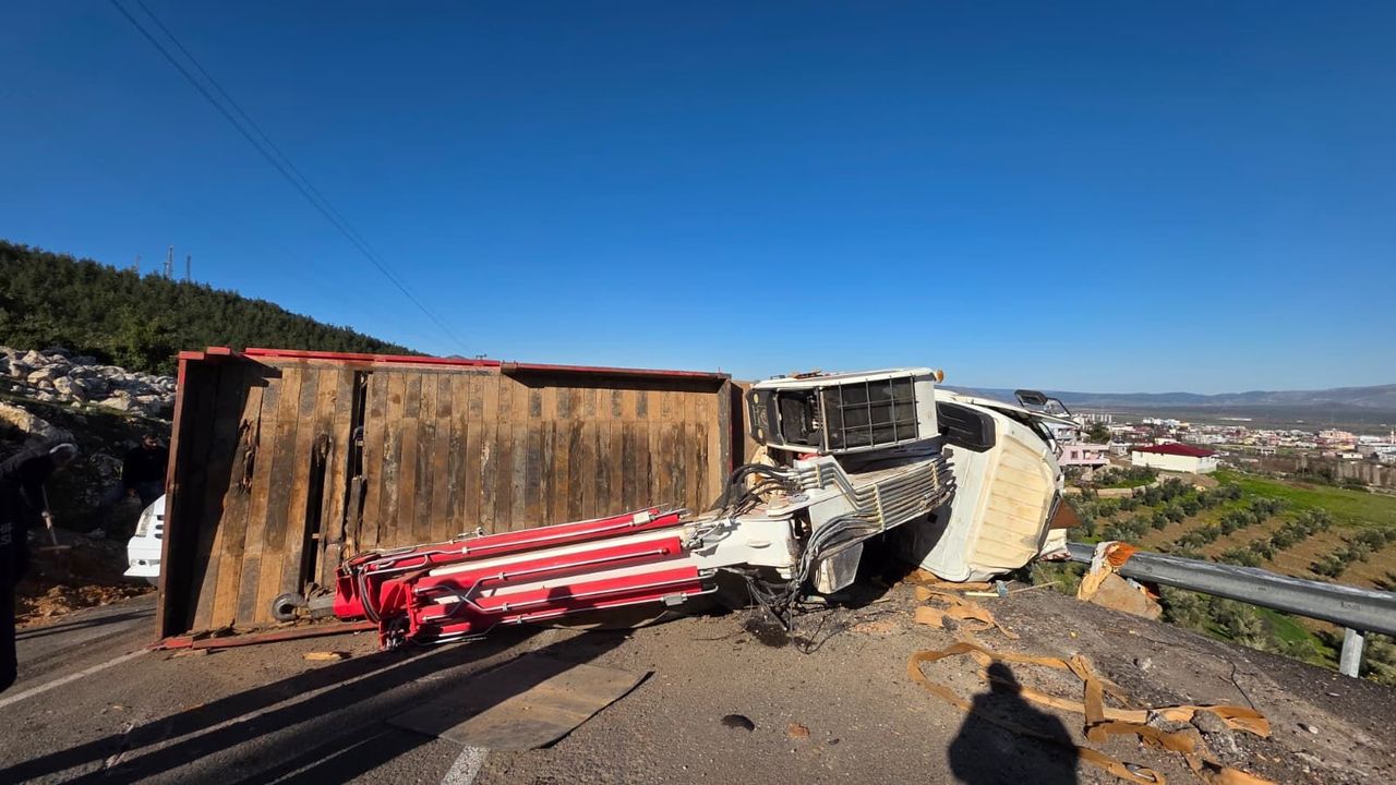 HATAY (AA) - Hatay'ın Hassa ilçesinde devrilen vincin sürücüsü yaralandı.