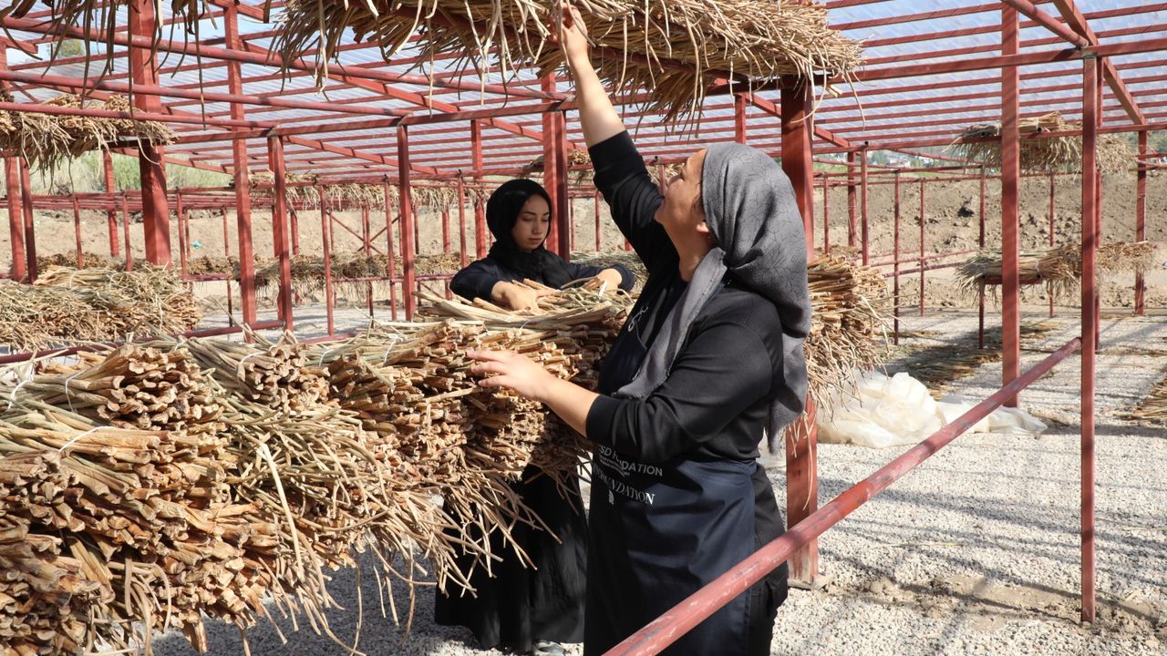 Hatay Kariyer ve İstihdam Merkezi kurslarında eğitim alan kadınlar tarafından kurutulan sümbüller, sepet, çanta, saksı, tepsi gibi dekoratif ürünlere dönüştürülüyor.
