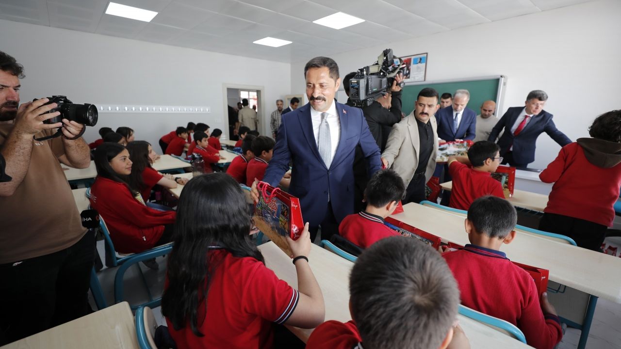Sınıfları gezen Vali Masatlı ve protokol üyeleri, sohbet ettikleri öğrencilere hediye verdi.
