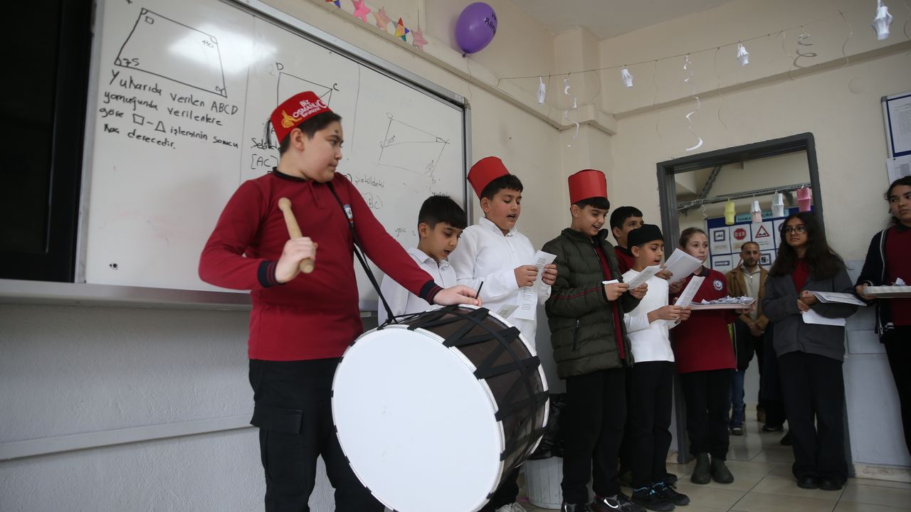 Davul ve maniler eşliğinde sınıf sınıf gezen öğrenciler, hurma ve imsakiye dağıttı.