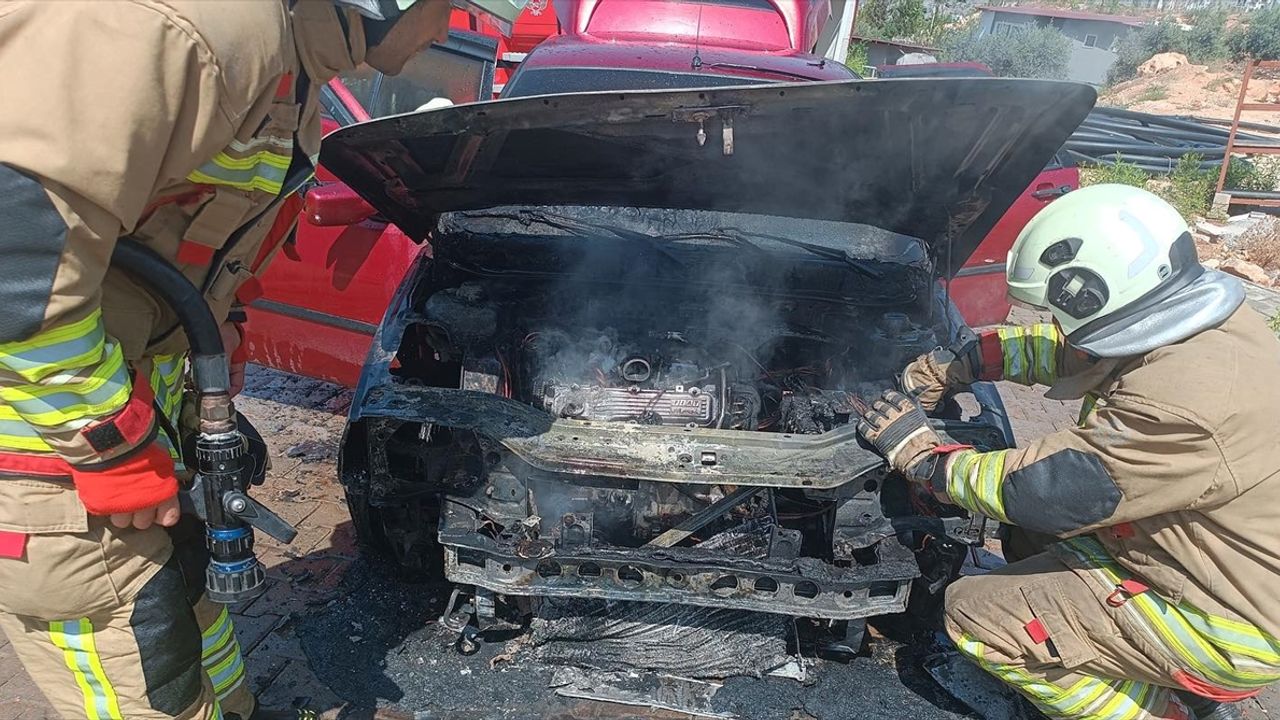 Ekiplerin müdahalesiyle söndürülen yangında otomobilde hasar oluştu.