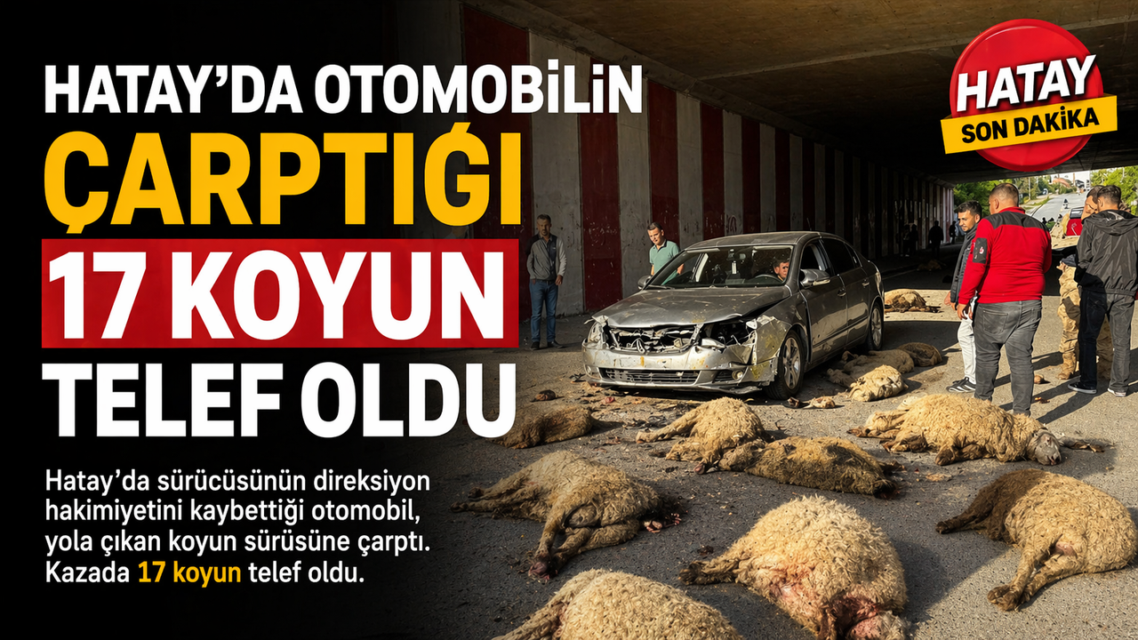 HATAY (AA) - Hatay'ın Dörtyol ilçesinde otomobilin sürüye çarpması sonucu 17 koyun telef oldu, 3 koyun da yaralandı.