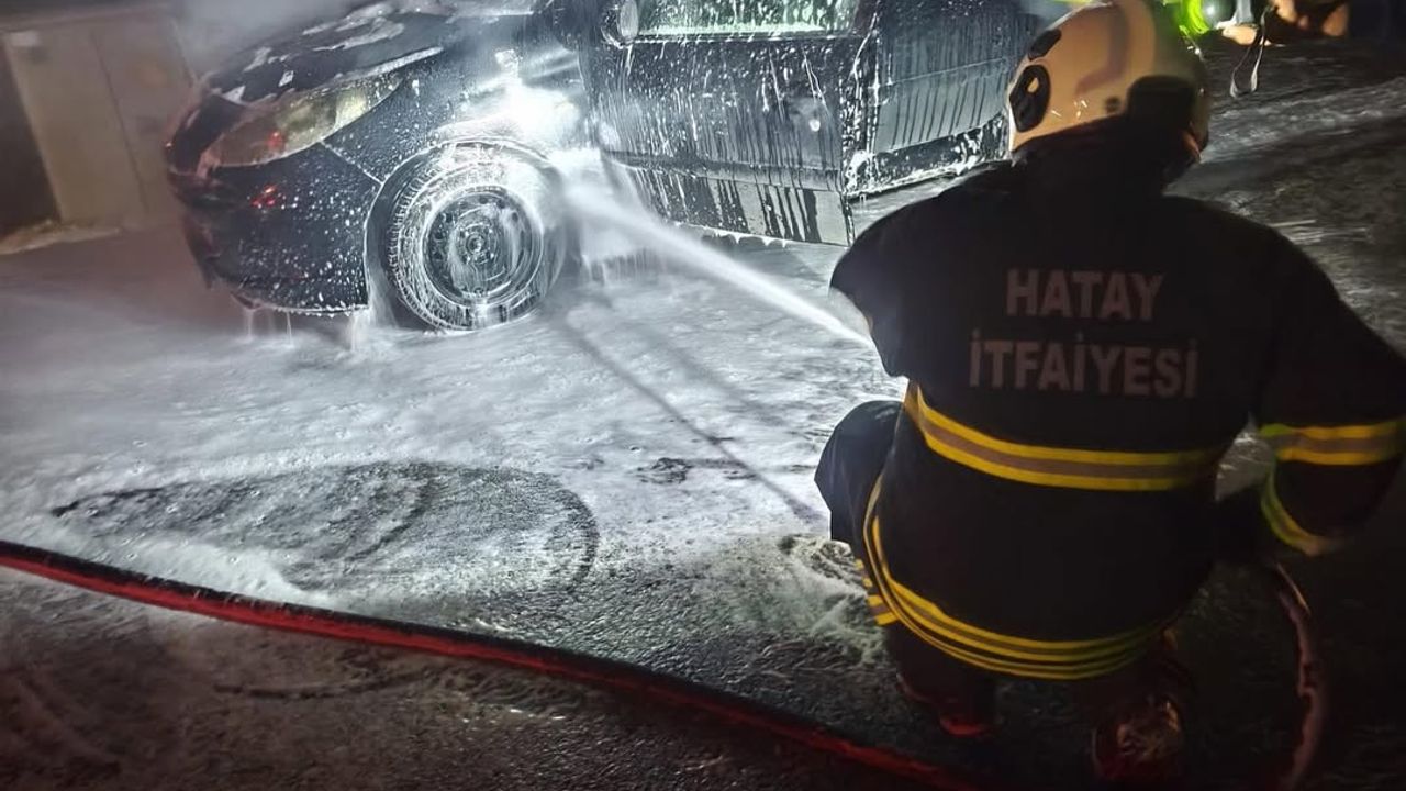 HATAY (AA) - Hatay'ın merkez Antakya ilçesinde seyir halindeki otomobilde çıkan yangın itfaiye ekiplerince söndürüldü.