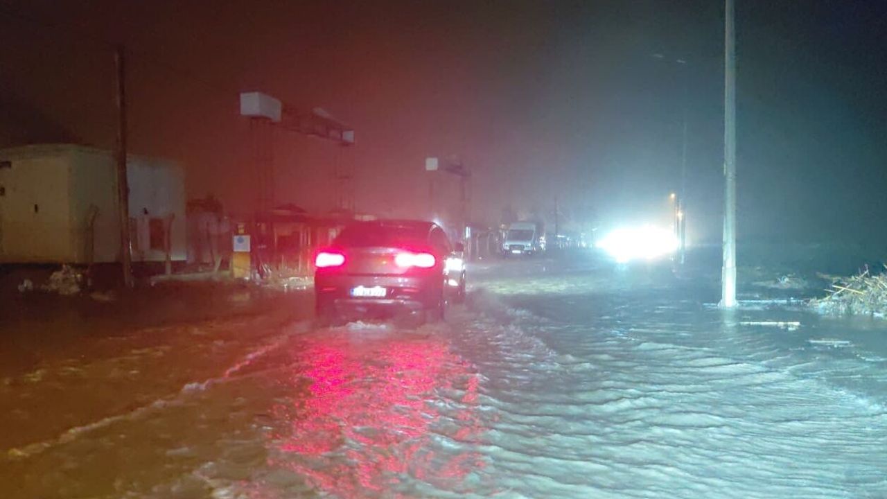 İlçede etkili olan sağanak nedeniyle bazı yollarda su birikintileri oluştu.