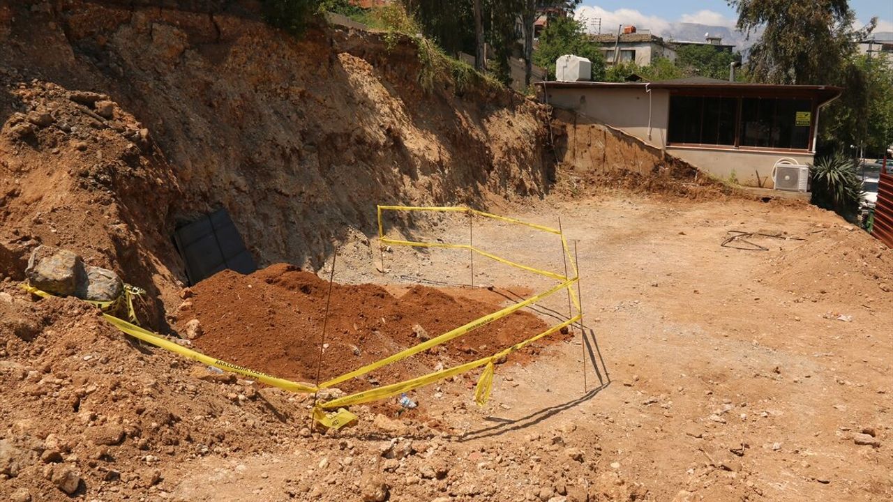 HATAY (AA) - Hatay'ın Kırıkhan ilçesinde belediye tarafından yürütülen sosyal tesis inşaatının temel kazısı sırasında tarihi kalıntılara rastlanılması üzerine çalışmalara ara verildi.