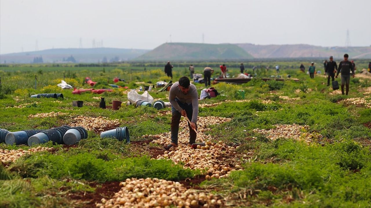 Verimli topraklarında yıl içerisinde birden fazla ürünün yetiştirildiği Amik Ovası'nda, turfanda soğan hasadına başlandı.