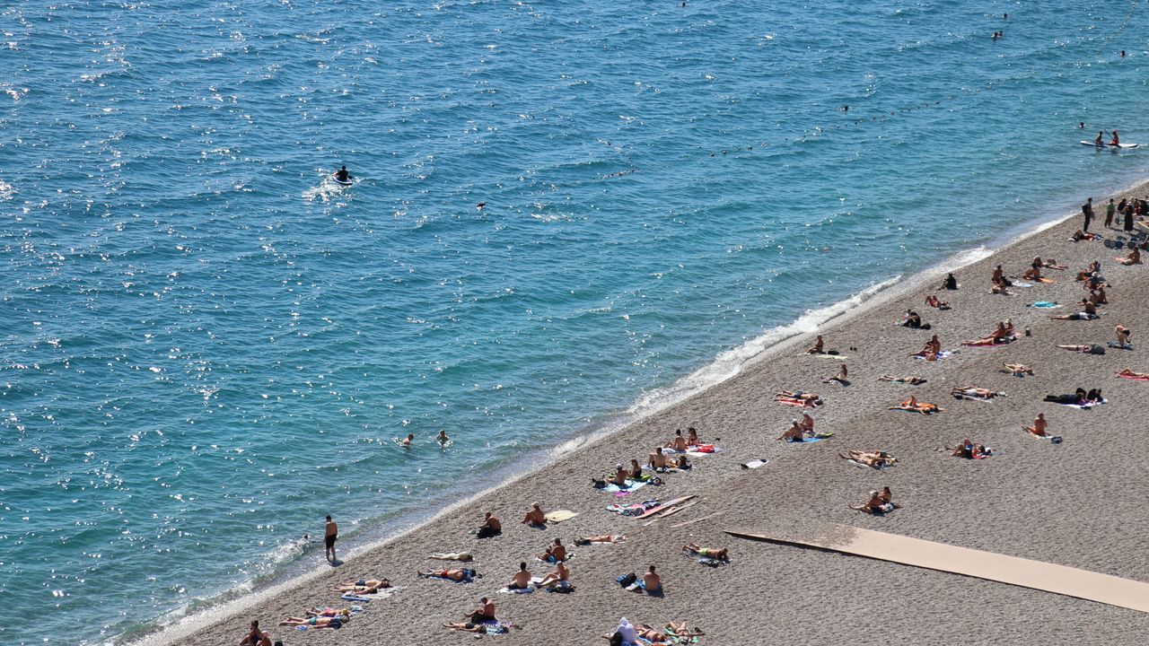ANTALYA (AA) - Hava sıcaklığının 28 derece olarak kaydedildiği Antalya'da, denize giren ve güneşlenenler sahillerde yoğunluk oluşturdu.