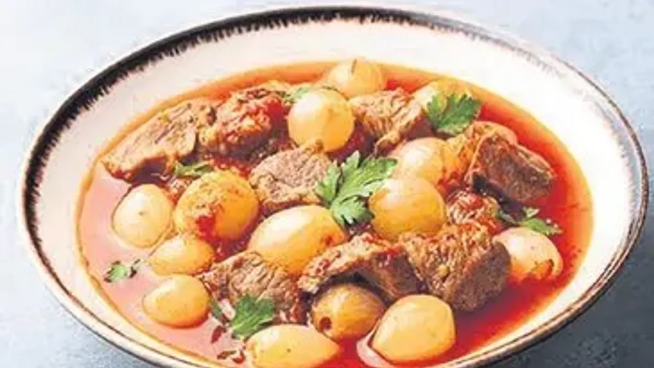 Günün ilk tarifi olan Soğanlı Güveç, kuşbaşı dana eti ve arpacık soğanı ile hazırlanıyor. Orta ateşte etlerin kendi suyunu salıp çekmesi ile başlayan pişirme süreci, sıvı yağ ve küp doğranmış patateslerin eklenmesiyle devam ediyor. Salça ve baharatların uyumu, güveçte sakız ve diğer malzemelerin ilavesiyle tamamlanıyor. Üzerini geçecek kadar kaynar su eklenip kısık ateşte pişirilen bu yemek, özellikle soğuk kış günlerinde hem doyurucu hem de lezzetli bir alternatif olarak öne çıkıyor.