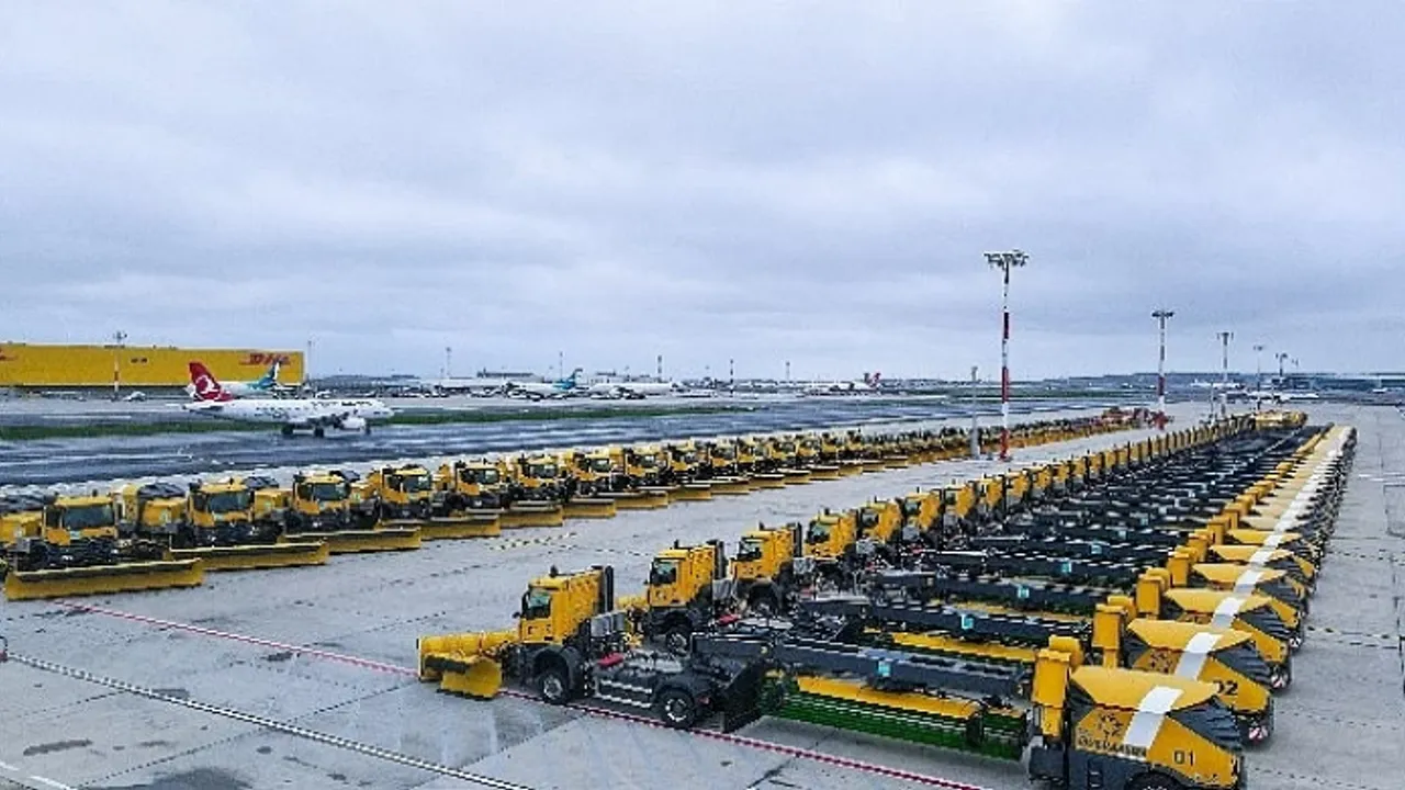 Dünyanın önemli küresel aktarma merkezlerinden İGA İstanbul Havalimanı, en çetin kış şartları için hazırlıklarını tamamladı. Uçuşların kesintisiz devam etmesi, yolcuların konforlu ve güvenli şekilde seyahat edebilmesi için 404 kişilik personel ve 176 araçla hizmet verileceği açıklandı.