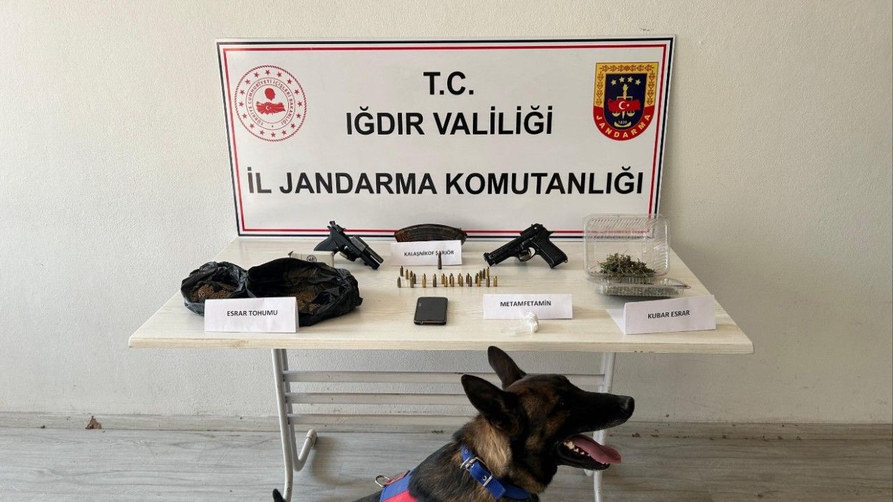 Iğdır İl Jandarma Komutanlığı, Merkez bölgesinde gerçekleştirdiği başarılı bir operasyonla uyuşturucu madde imal ve ticareti suçunu işlediği tespit edilen bir şüpheliyi yakaladı. Yapılan arama faaliyetinde, şüphelinin ikametinde yapılan incelemede; 56 gram kubar esrar, 5 gram metamfetamin, 175 gram kenevir tohumu, 2 adet ruhsatsız tabanca, 29 adet tabanca mermisi ve 1 adet kalaşnikof şarjörü ele geçirildi. Ele geçirilen uyuşturucu ve silah malzemeleriyle ilgili olarak, yakalanan şüpheli hakkında adli işlemler başlatıldı.