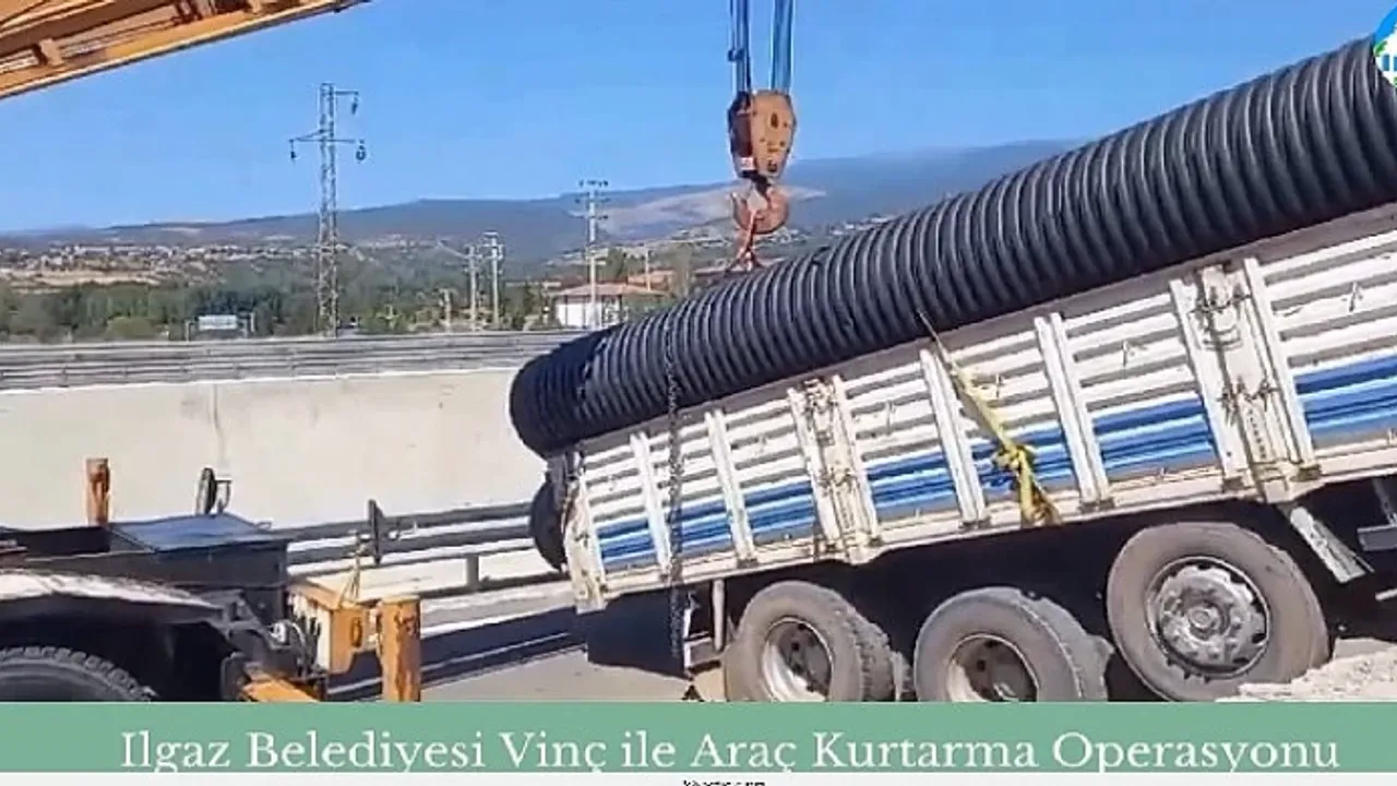 Ilgaz’ımız için VİZYON PROJELERİMİZ içinde olan ve ileride hayata geçirmeyi planladığımız ORGANİZE SANAYİ BÖLGESİ için aktif olarak kullanılacağını öngördüğümüz MOBİL VİNÇ’i envanterimize kazandırmıştık. Bugün meydana gelen olayda bir kamyon yoldan çıkarak refüjden boşluğa düşmüştür. Gelen yardım çağrısı üzerine ekiplerimiz harekete geçmiş, MOBİL VİNÇ aracımız kurtarma işlemini gerçekleştirmiştir.