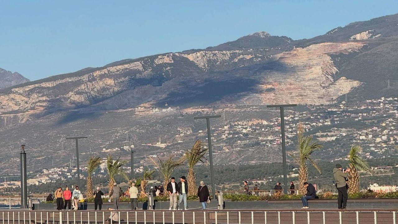 İskenderun sahil bandı, son günlerde hem doğanın hem de sosyal yaşamın en güzel renklerine ev sahipliği yapıyor. Şehrin hemen arkasında yükselen ve zirveleri beyaza bürünen Amanos Dağları, sahilin modern mimarisi ve palmiye ağaçlarıyla birleşerek kartpostallık görüntüler oluşturuyor.