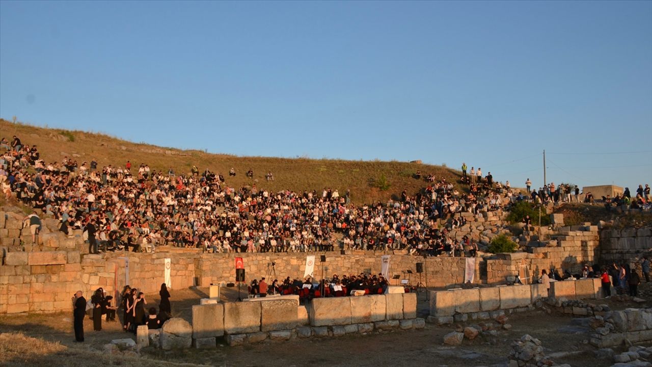 Helenistik ve Roma dönemlerinde inşa edilen ve tarihte kapasitesi 5 bin kişiye ulaşan antik tiyatroda, tarih ve sanat bir arada yer aldı.