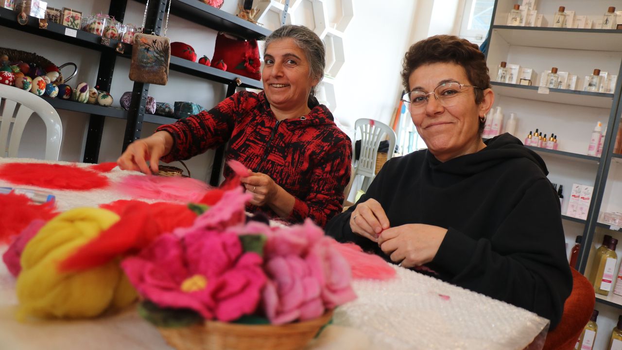 Kooperatif ortağı emekli hemşire Zehra Çağlayan da iğneli ve ıslak keçe teknikleriyle uyku topları, kurutma makinesi topları, oyuncaklar, sabunlar ve çanta kumaşları ürettiklerini belirtti.