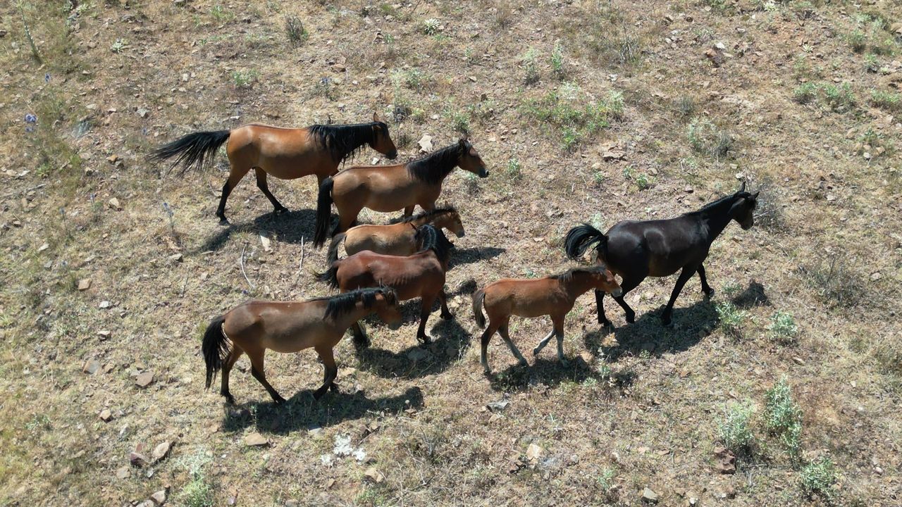 Kışın zamanlarının çoğunu yaylalarda yiyecek arayarak geçiren ve sayılarının bine yaklaştığı tahmin edilen yabani atlar, baharın gelmesiyle meralarda otluyor.
