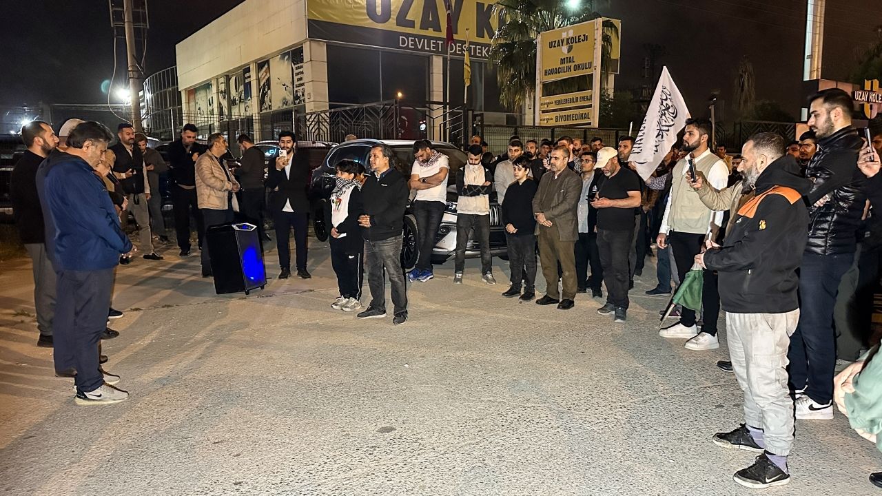 Bazı sivil toplum kuruluşlarının üyeleri ve vatandaşlar, teravih namazının ardından Sabancı Merkez Camisi önünde bir araya geldi.