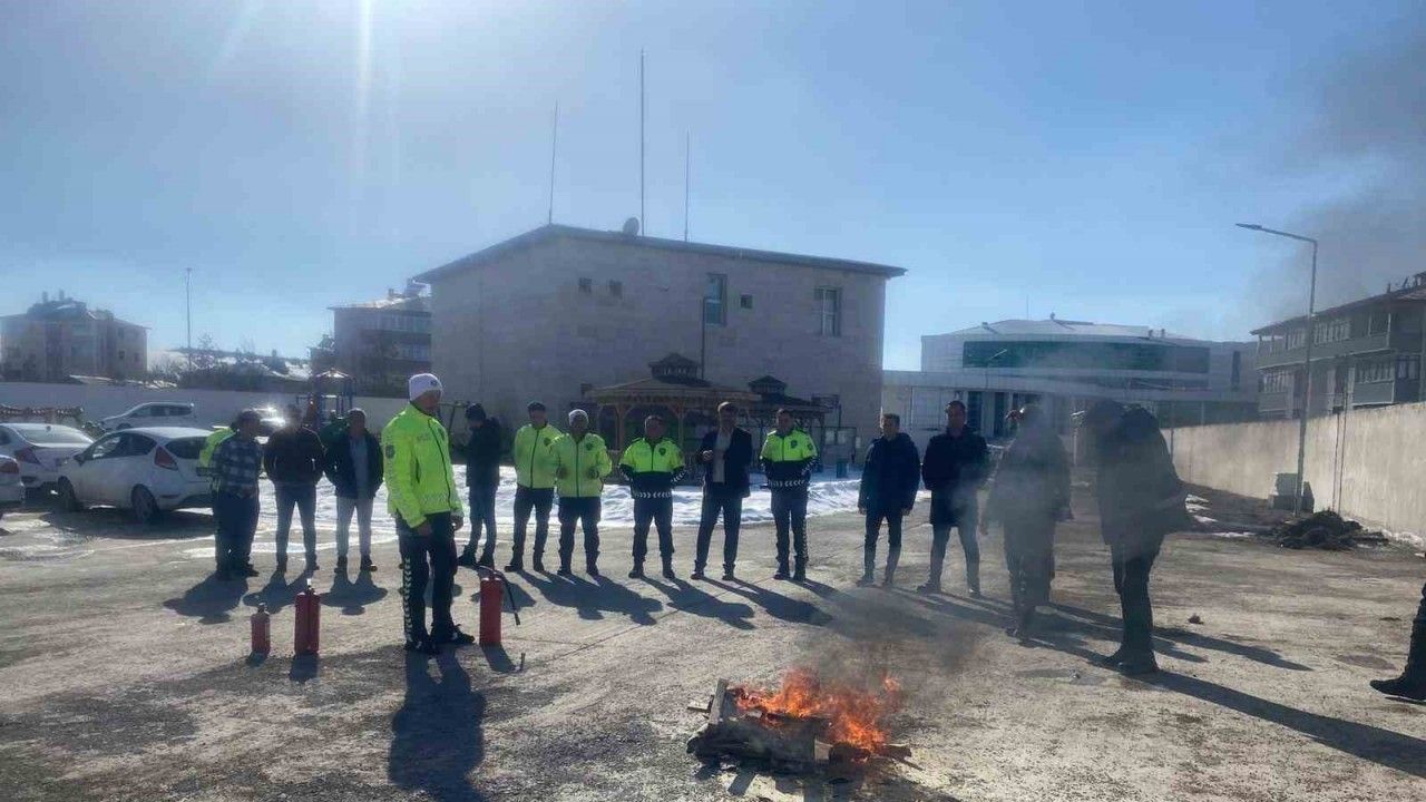 Eğitimlerin ardından yangın tatbikatı yapılarak trafik polislerinin muhtemel yangın risklerine karşı hazır ve hızlı olması sağlandı.