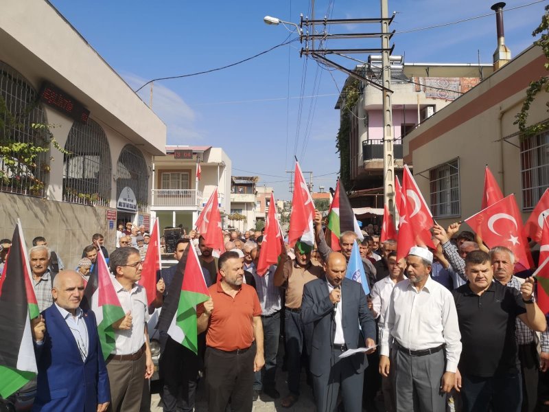 Türkiye'de İsrail'in Filistin'de uyguladığı zulme sessiz kalmadı. Osmaniye'nin Kadirli İlçesinde Sivil Toplum Kuruluşları, Cuma namazından sonra Mirac Camii'nde bir araya gelerek Filistin'de şehit düşen kardeşlerimiz için gıyabi cenaze namazı kıldılar. İşte o anlamlı etkinlikle ilgili detaylar: