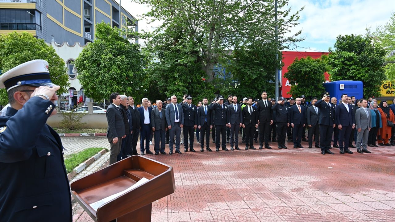 Hükümet Konağı bahçesinde düzenlenen tören, İlçe Emniyet Müdürü Esat Kahveciler'in Atatürk Anıtı'na çelek bırakmasıyla başladı.