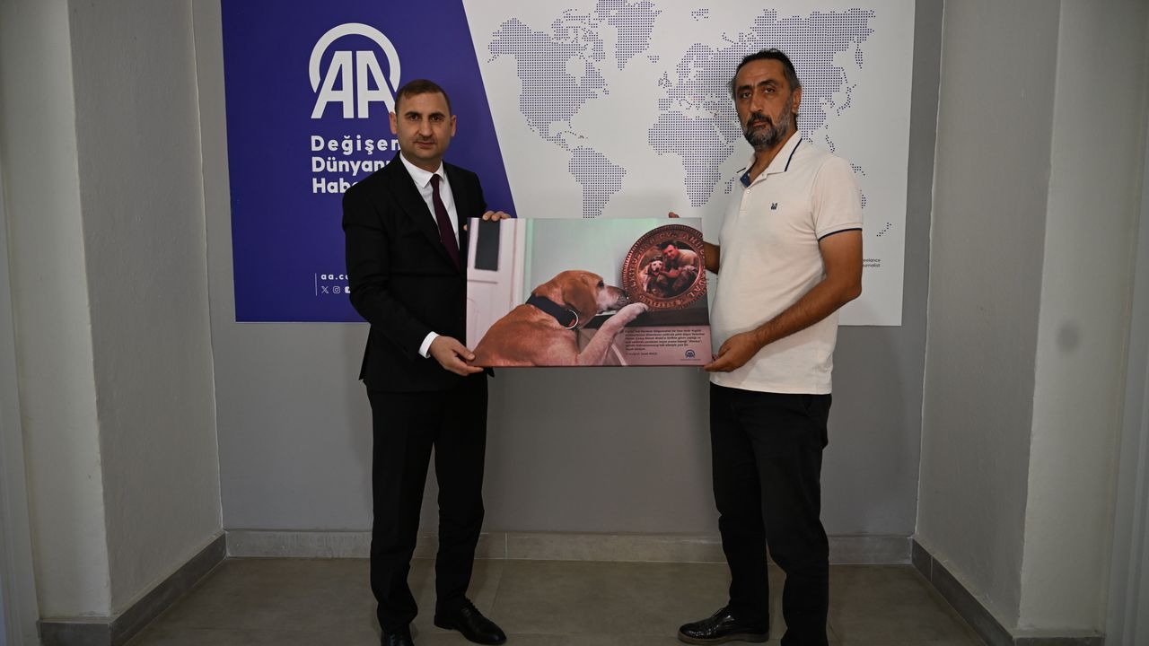 Özdemir'e, AA'nın 2021 'Yılın Fotoğrafları' oylamasında yaşam kategorisinde birinci olan 'Oğullarının emaneti Atmaca' adlı fotoğrafın tablosu hediye edildi.