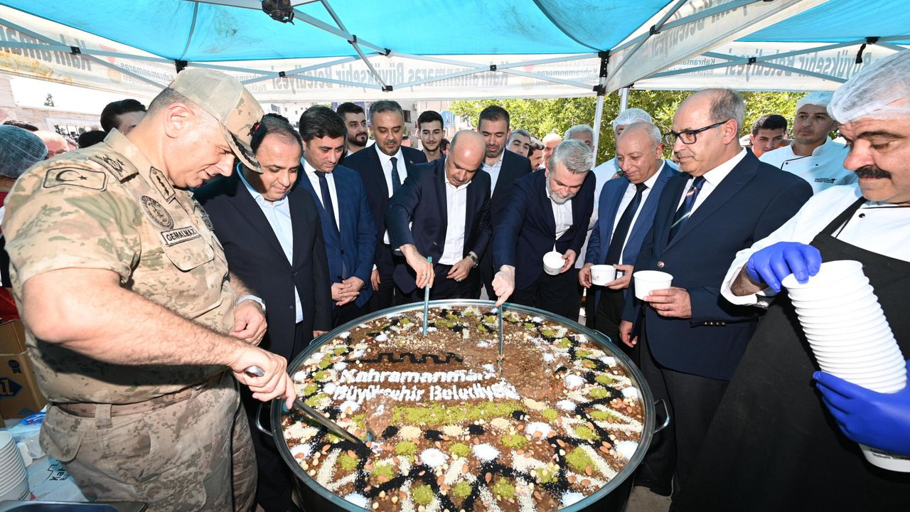 Standı ziyaret eden Kahramanmaraş Büyükşehir Belediye Başkanı Fırat Görgel, İl Jandarma Komutanı Ali Gemalmaz ve İl Emniyet Müdürü Nurettin Gökduman vatandaşlara aşure ikram etti.