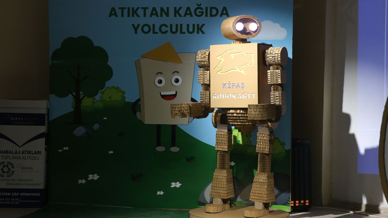 KAHRAMANMARAŞ (AA) - Atık kağıtlardan üretilen karton robot, öğrencilerle buluşarak çevre bilinci ve geri dönüşümün önemine dikkat çekti.