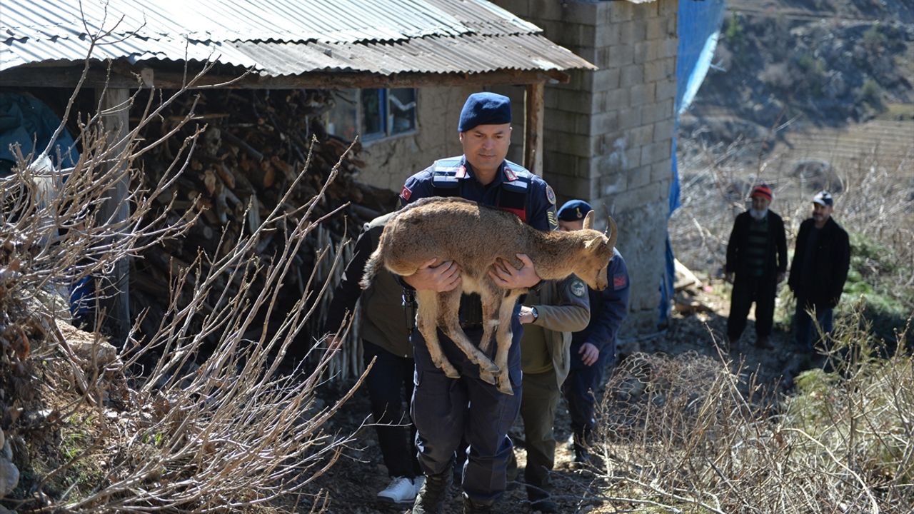 Uzun uğraşlar sonucu bulunduğu yerden çıkarttığı yaban keçisini eve getiren Kepenek, yem ve su verdiği hayvanı korumaya alarak durumu güvenlik korucularına haber verdi.