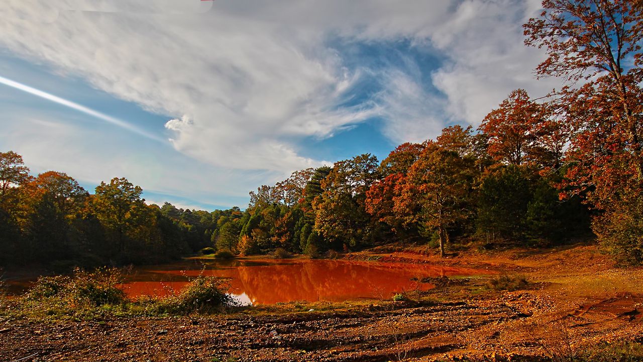 Hatay’ın Amanoslar bölgesinde yer alan ve Erzin ilçesine bağlı Karagöl, sonbaharın etkisiyle adeta renk cümbüşüne büründü. Gölün çevresindeki ağaçlar, kahverengi, sarı ve kızıl tonlarına bürünerek bölgeyi büyüleyici bir manzaraya dönüştürdü.