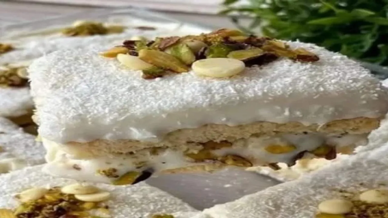 Pastanın üzerini Hindistan cevizi ile kaplayın ve fıstıkla süsleyin.