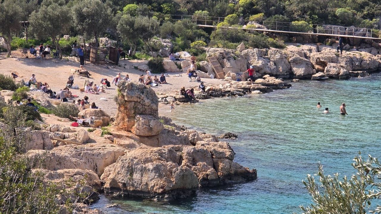 ANTALYA (AA) - Antalya'nın Kaş ilçesinde güneşli havayı fırsat bilenler, martta deniz keyfi yaşadı.
