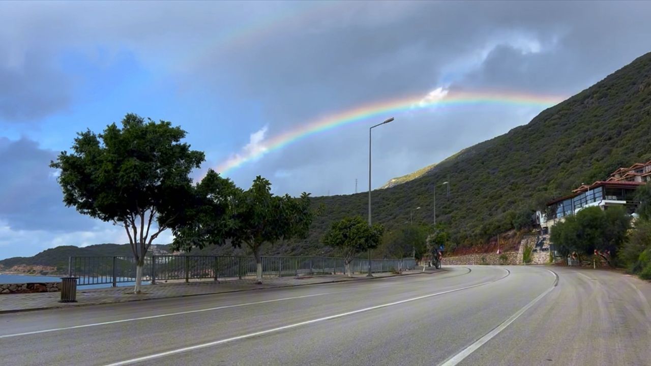 ANTALYA (AA) - Antalya'nın Kaş ilçesinde sabah saatlerinde etkili olan yağışın ardından gökkuşağı oluştu.
