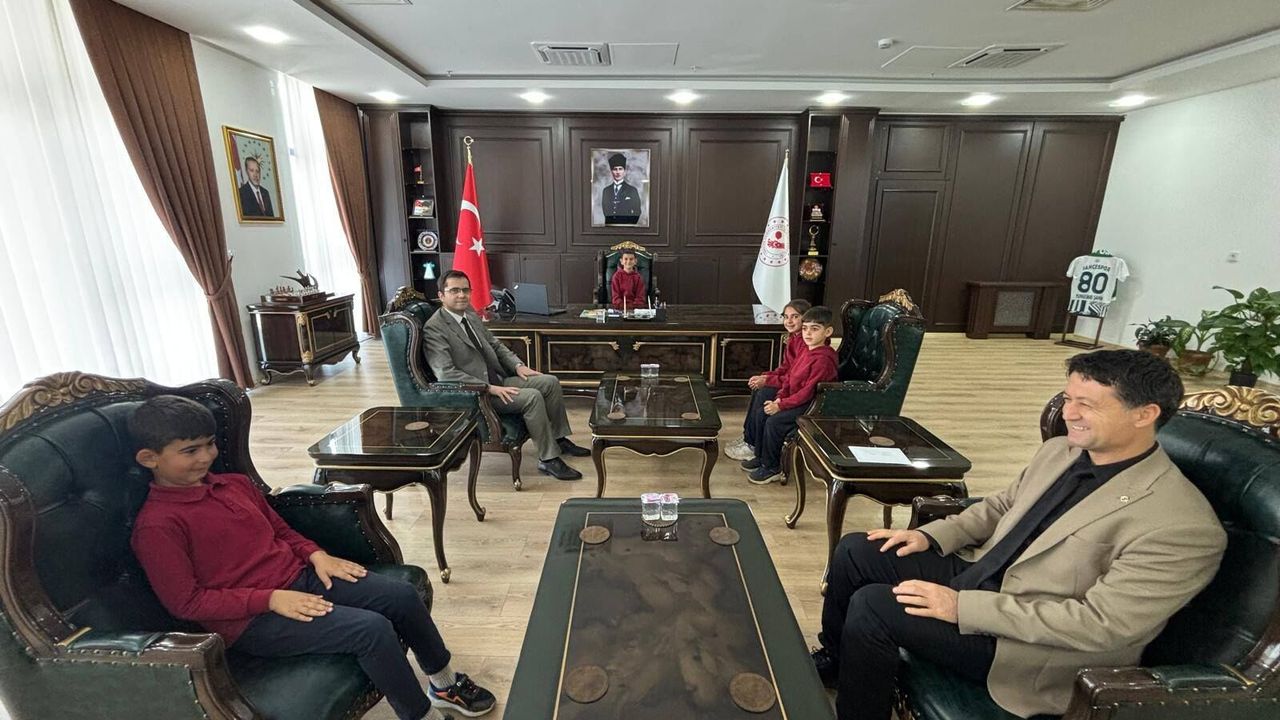 Ziyaret sırasında Kaymakam Yunus Emre Şahin, makam koltuğunu Çelikler İlkokulu 4. sınıf öğrencisi Ömer Esad Çelik’e temsili olarak devretti.