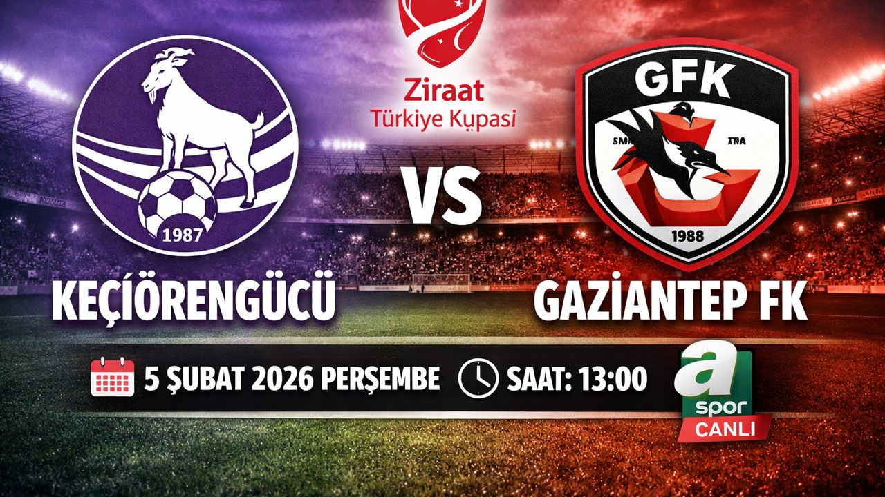 Ziraat Türkiye Kupası Grup Aşaması 3. hafta kapsamında oynanacak Keçiörengücü – Gaziantep FK karşılaşması, 5 Şubat 2026 Perşembe günü saat 13.00’te başlayacak. Mücadele, A Spor ekranlarından canlı yayınlanacak.