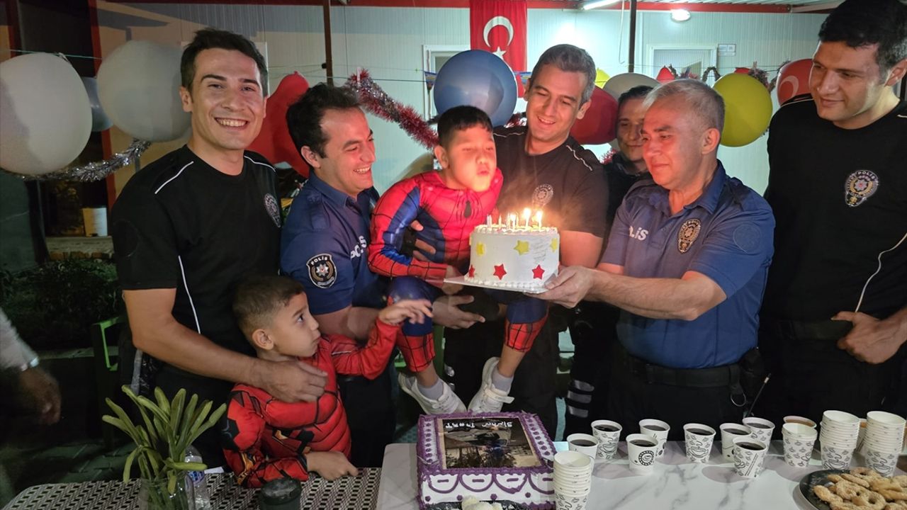 HATAY (AA) - Hatay'ın Kırıkhan ilçesinde polis ekipleri, kas erimesi olarak bilinen Duchenne Kas Distrofisi (DMD) hastası 9 yaşındaki Sinan Mert Boz'a sürpriz doğum günü kutlaması yaptı.