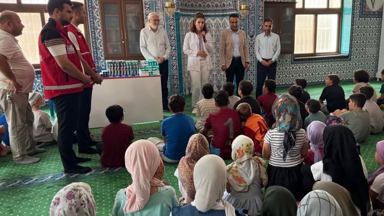 İlçe Sağlık Müdürlüğü ve İlçe Müftülüğü işbirliğinde düzenlenen etkinlikte, Kur'an kursu öğrencilerine ağız ve diş sağlığı taraması yapıldı.