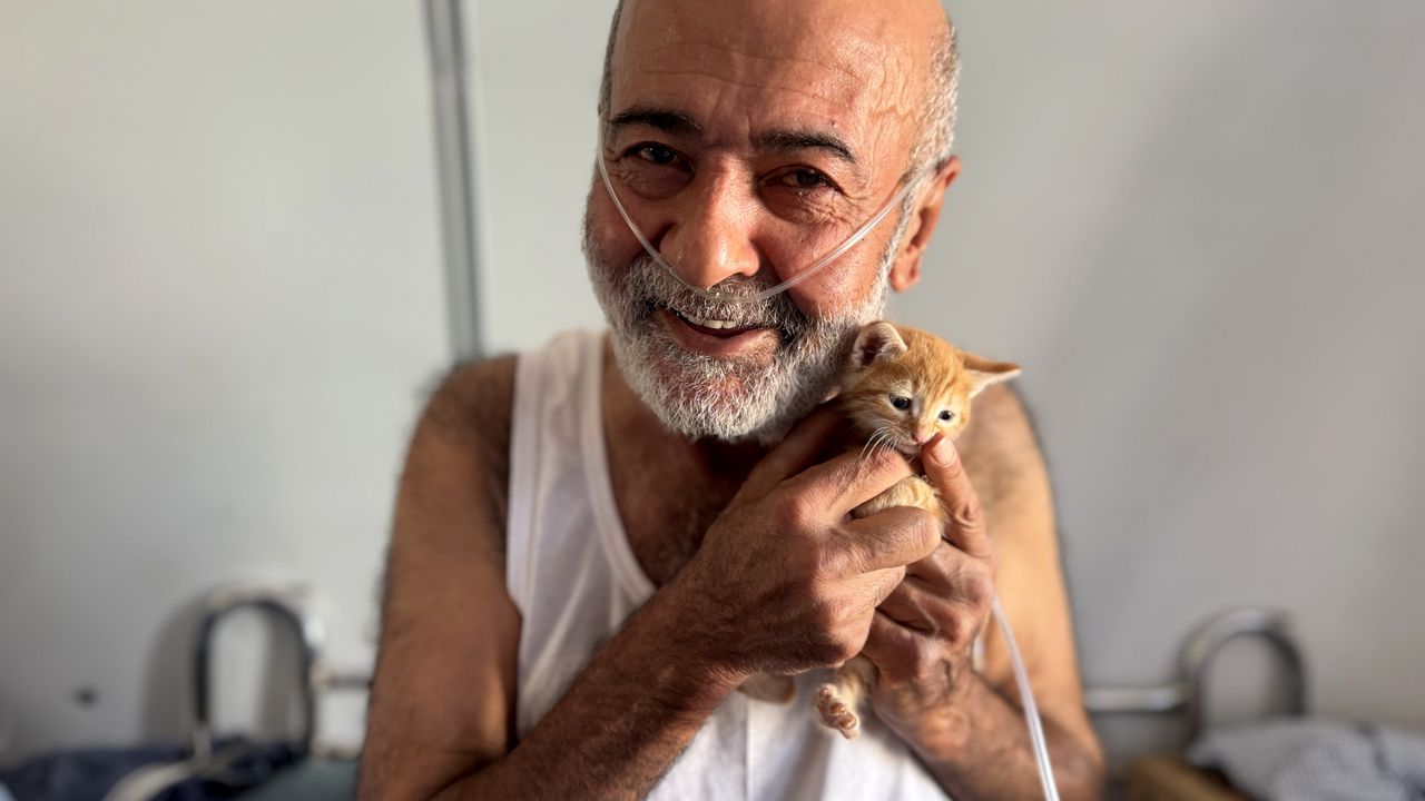 Rahatsızlığı nedeniyle günün büyük bölümünü oksijen cihazına bağlı sürdüren Daşdemir, kaldığı konteynerde 'Maviş' adını verdiği sahipsiz bir kedi yavrusunun bakımını üstleniyor.
