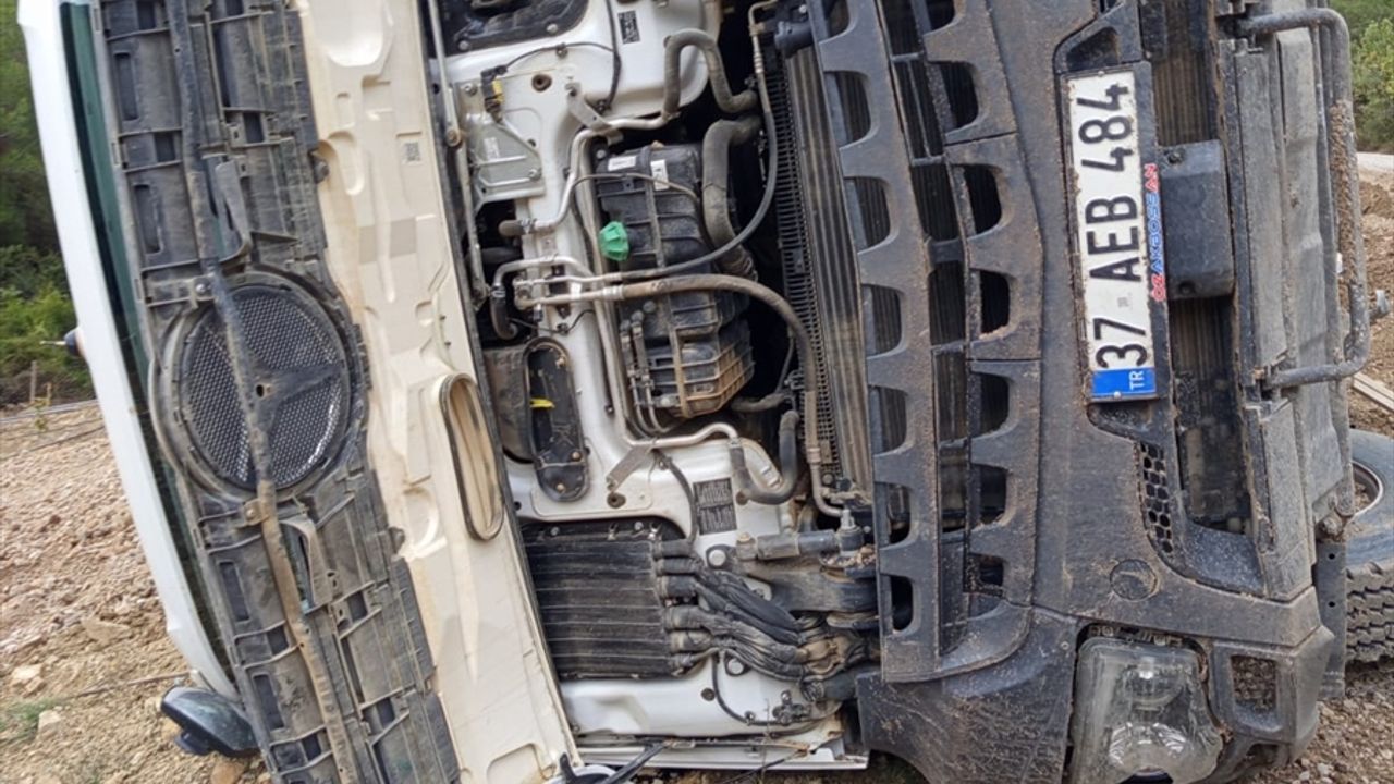Bilal T. idaresindeki 37 AEB 484 plakalı kamyon, Şerifli Mahallesi'nde sürücüsünün kontrolünden çıkıp devrildi.