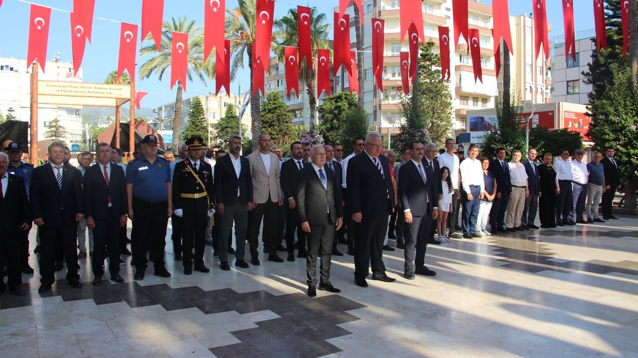 Cumhuriyet Meydanı'ndaki törene, Kumluca Kaymakamı Bahadır Güneş, İlçe Belediye Başkanı Mesut Avcıoğlu, Cumhuriyet Başsavcısı Gökhan Kıymacı, daire amirleri, siyasi parti temsilcileri, sivil toplum örgütü temsilcileri, muhtarlar ve vatandaşlar katıldı.